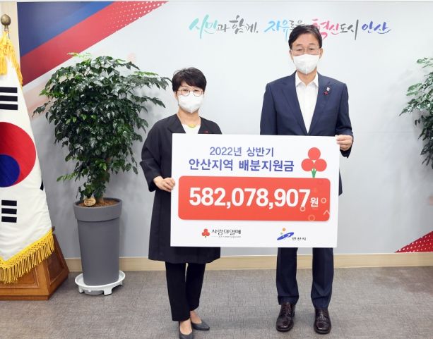 [한국기자연대] 안산시는 1일 경기사회복지공동모금회(경기사랑의열매) 이웃사랑 성금으로 5억 8천여 만원을 기탁받았다.
