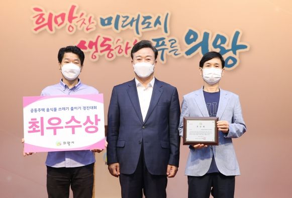 [한국기자연대] 의왕시는 2022년도 상반기 공동주택 대상 음식물쓰레기 줄이기 경진대회에서 우수한 성적을 거둔 공동주택 4곳에 대한 시상식을 1일 시청 대회의실에서 진행했다.