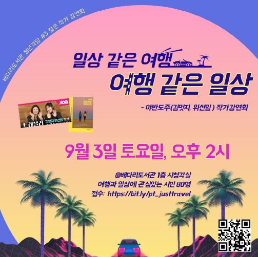 정해진 길을 가지 않아도, 행복할 수 있다고 말하는 작가는 강연회 '일상 같은 여행, 여행 같은 일상'를 통해 청춘의 위로와 힐링의 메시지를 전할 예정이다.