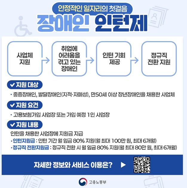 · 인턴지원금 : 인턴 기간 임금 80% 지원(월 최대 100만 원, 최대 6개월)