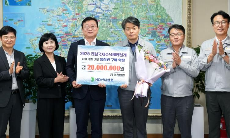 약정은 전남을 대표하는 글로벌 조선해양 기업인 HD현대삼호가 2천만 원 규모의 입장권 구매를 통해 지역 대표 문화행사인 2025 전남국제수묵비엔날레의 성공적 개최에 힘을 보태기 위해 진행됐다.