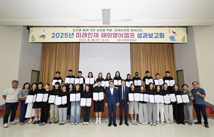 [한국기자연대] 춘향장학재단은 지난 8월 26일 남원시청 강당에서 '2025년 미래인재 해외영어캠프 성과보고회'를 성황리에 개최했다.