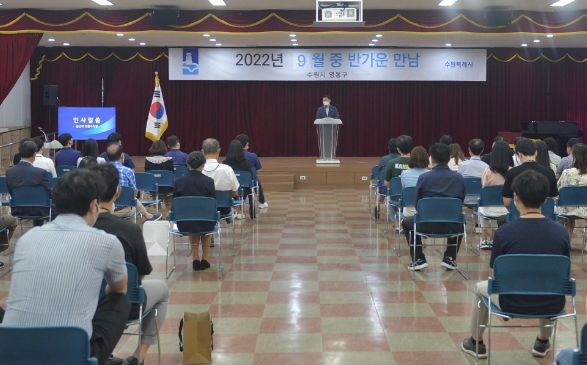 [한국기자연대] 수원특례시 영통구는 지난 2일, 즐거운 직원 화합의 장인‘반가운 만남’을 개최했다.