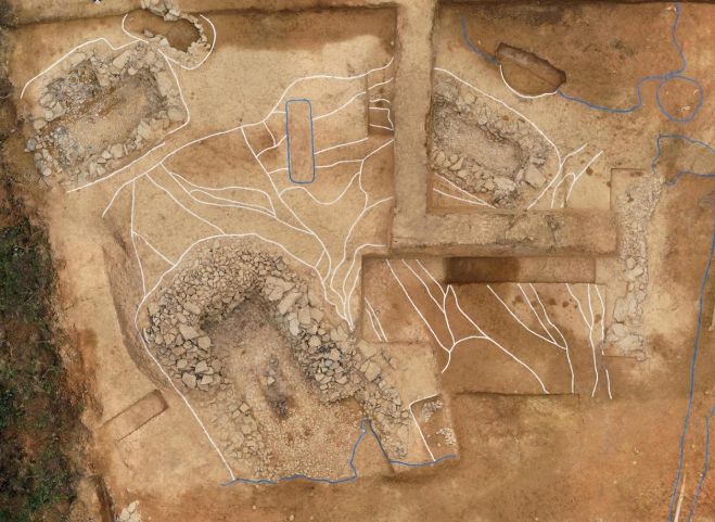 2호와 3호 돌무지덧널무덤은 1호의 봉토에 덧대어 만들어졌는데, 2호는 ‘凸’자 형태이고 3호는 장방형 형태이다. 두 무덤에서는 모두 다수의 철제 무기류와 토기류가 출토됐다.