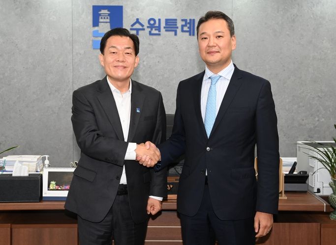 [한국기자연대] 이재준 수원특례시장이 강투무르 툽덴도르찌 몽골 환경부 차관을 만나 수원시와 몽골의 환경 분야 교류·협력 방안을 논의했다.