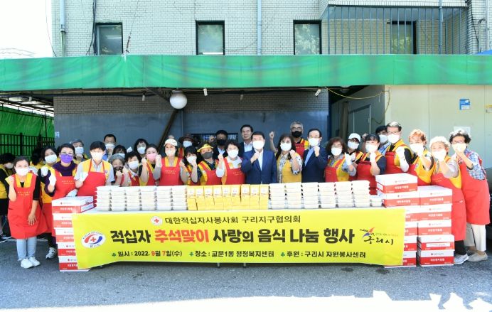 [한국기자연대] 구리시 대한적십자봉사회(회장 권임순)는 7일 교문1동 행정복지센터 뒷마당에서 각 동 회원 50여 명이 모인 가운데 추석맞이 음식 나눔 봉사를 진행했다.