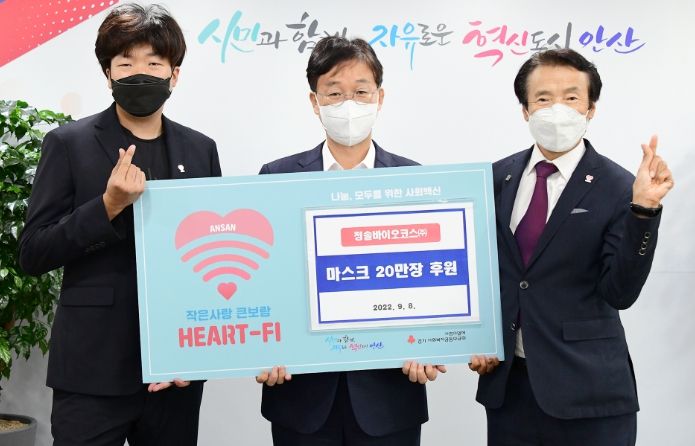 [한국기자연대] 안산시는 지난 8일 ㈜청솔바이오코스로부터 경로당 어르신을 위한 KF94 마스크 20만 장을 기탁받았다고 13일 밝혔다.