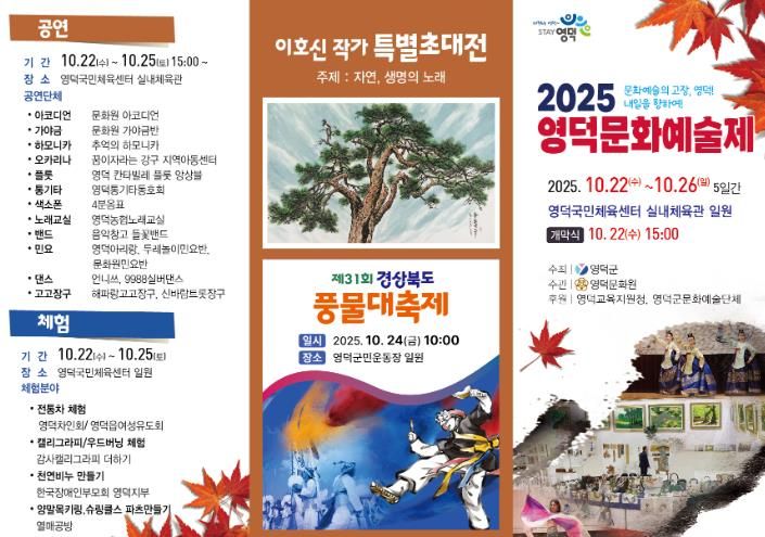 특히 10월 24일에는 영덕군민운동장에서 '제31회 경상북도 풍물대축제'가 함께 열려, 가을의 풍성한 문화 향연을 즐길 수 있을 전망이다.