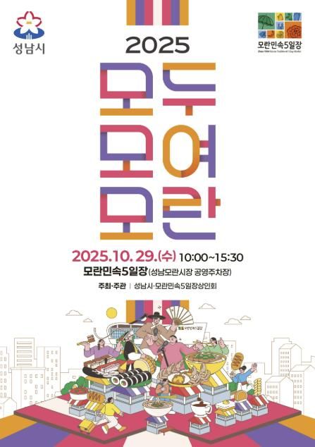 [한국기자연대] 성남시는 오는 10월 29일 오전 10시부터 오후 3시 30분까지 모란민속5일장(중원구 둔촌대로 68)에서 ‘2025 모두모여모란’ 축제를 연다.