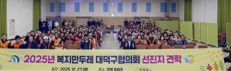 [한국기자연대] 대전 대덕구는 27일 복지만두레 대덕구협의회 소속 12개 동 회원 150여 명이 구청 청렴관 워크숍과 전북 임실군 선진지 견학을 잇달아 진행했다고 밝혔다.