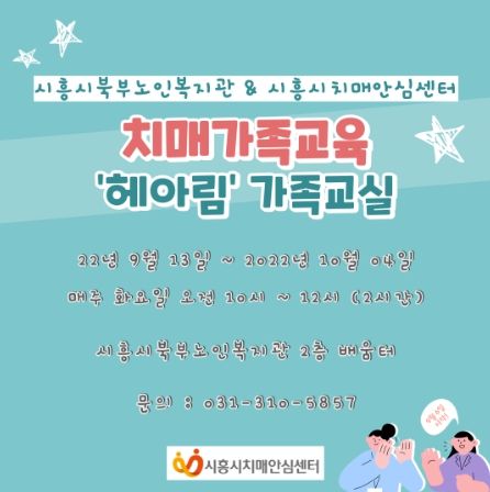 이에 시흥시치매안심센터는 치매환자 가족지원서비스의 접근성과 편의성을 높이기 위해 시흥시북부노인복지관과 협력해 찾아가는 '헤아림' 치매가족교실을 계획했다.