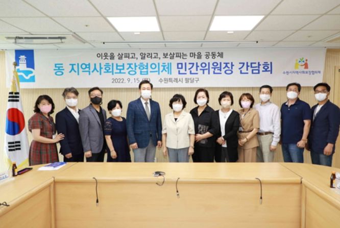 [한국기자연대] 수원시 팔달구는 15일, 팔달구 관내 10개 동 지역사회보장협의체 민간위원장과 한자리에 모여 2023년 지역주민이 체감할 수 있는 복지사업에 대해 논의하는 시간을 가졌다.