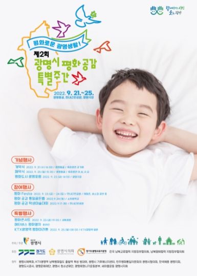 [한국기자연대] 광명시는 오는 9월 21일부터 25일까지 ‘평화로운 광명생활~!’을 주제로 『제2회 광명시 평화공감 특별주간』을 운영한다.