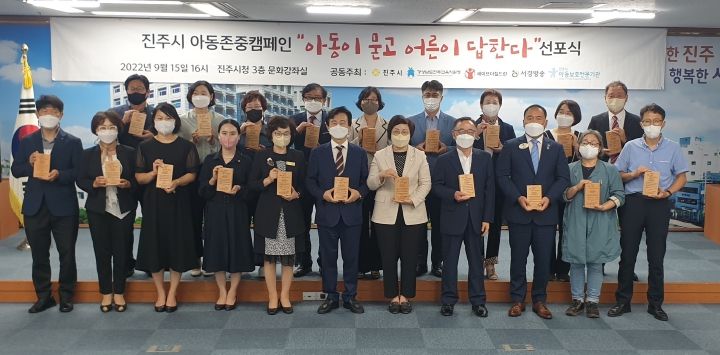 [한국기자연대] 진주교육지원청은 지난 9월 15일 진주시, 진주교육지원청, 세이브더칠드런, 진주아동보호전문기관, 서경방송이 공동주최하는‘아동이 묻고 어른이 답한다’라는 주제로 진행된 아동 존중 캠페인 선포식에 참석하여 아동존중 실천 약속을 했다.