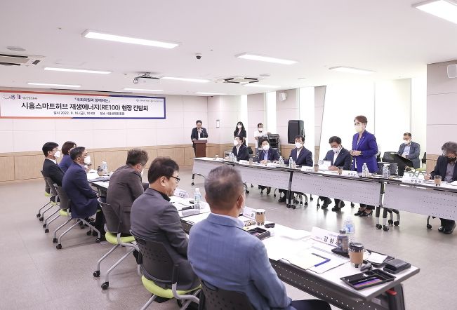 [한국기자연대] 송미희 시흥시의회 의장이 16일 시흥스마트허브 재생에너지 관련 정책 간담회에 참석했다.