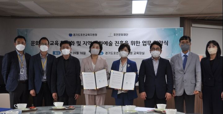 [한국기자연대] 포천교육지원청은 16일 포천문화재단과 문화예술교육 활성화와 지역 문화진흥을 위한 업무협약을 체결했다.
