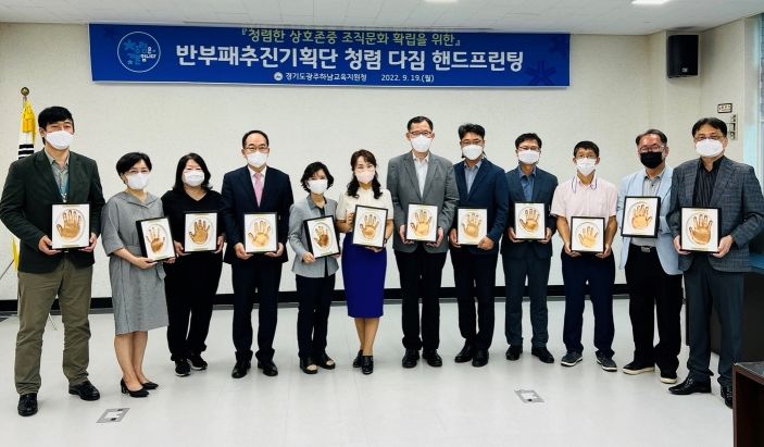 [한국기자연대] 청렴한 상호존중 조직문화 확립에 주력하고 있는 경기도광주하남교육지원청은 19일, '반부패추진기획단 청렴 솔선수범 서약식 및 핸드프린팅' 행사를 개최했다.