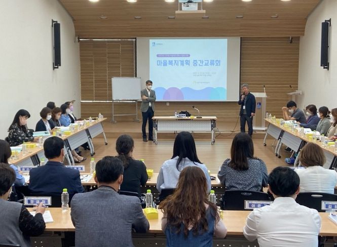 [한국기자연대] 수원시가 23일 수원시홍재복지타운 교육장에서 ‘마을복지계획 중간교류회’를 열고, 주민들이 수립한 마을 복지 사업 내용 등을 공유했다.
