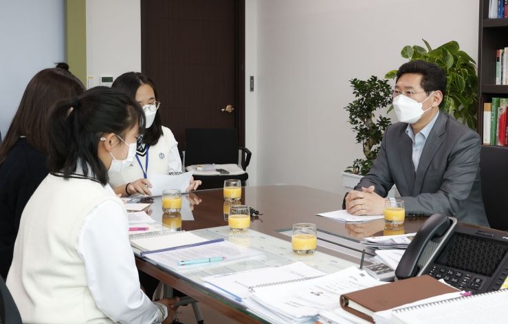이 시장은 학생기자들의 질문에 하나하나 정성껏 답했다.