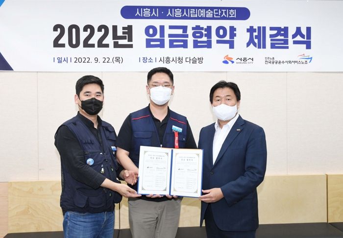 [한국기자연대] 시흥시는 22일 전국공공운수사회서비스노동조합 경기문화예술지부 시흥시립예술단지회와 2022년도 임금협약을 체결했다.