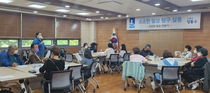 [한국기자연대] 수원특례시 영통구는 지난 26일‘건강한 일상 만들기’라는 주제로 누구나 실천할 수 있는 쉬운 목표를 설정하여 함께 실천하고 공유하는‘소소한 일상탐구 살롱’첫번째 워크숍을 개최했다.