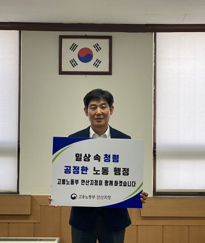 [한국기자연대] 고용노동부 안산지청은 ‘시민과 함께 하는 자유로운 도시 안산 만들기, 청렴 챌린지 플러스’ 캠페인에 김주택 안산지청장이 동참했다고 26일 밝혔다.