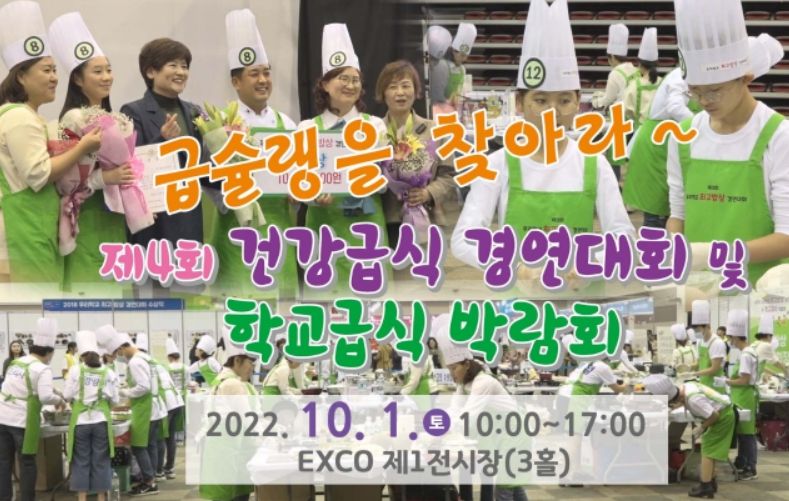 [한국기자연대] 대구광역시교육청은 10월 1일 오전 10시 대구전시컨벤션센터(EXCO) 1층 전시관(3홀)에서 학생, 학부모, 급식관계자 등 6,000여 명이 참여하는‘제4회 건강급식 경연대회 및 학교급식 박람회’를 개최한다.