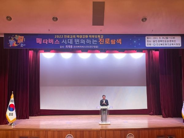 [한국기자연대] 경상북도울진교육지원청은 9월 26일 울진 왕피천공원 문화관에서 관내 초・중・고 학부모를 대상으로 “2022학년도 진로교육 역량강화 학부모 특강”을 개최했다.