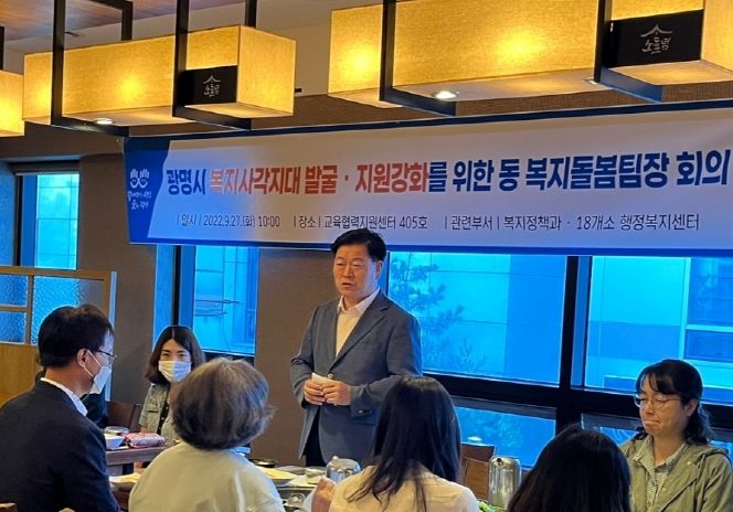 [한국기자연대] 박승원 광명시장은 복지사각지대 발굴과 지원 강화를 위해 27일 광명시교육학습지원센터에서 18개 동 복지돌봄팀장과 간담회를 가졌다.