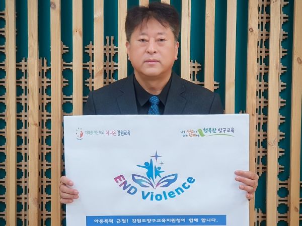 이재학 교육장은 서흥원 양구군수의 지명으로 참여했으며, 양구교육지원청 구성원의 마음을 모아 ‘아동폭력 근절! 강원도양구교육지원청이 함께 합니다’라는 메시지를 전했다.