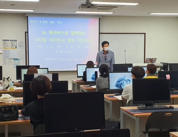 이번 연수는 3D 메타버스와 함께하는 디지털 리터러시 향상을 목적으로 운영하며, 퇴근 시간 이후 대학교 지정 강의실에서 강의, 실습 등의 방법으로 진행한다.