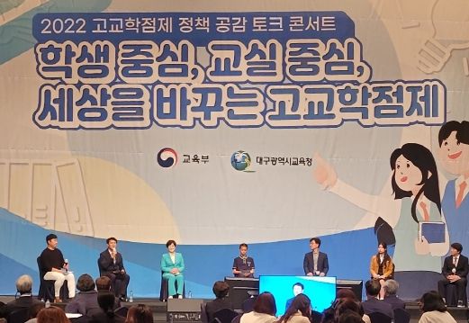 [한국기자연대] 대구시교육청은 지난 10월 1일 호텔 인터불고 대구(만촌) 2층 컨벤션 홀에서 사전 신청을 받은 초‧중‧고 학생 및 학부모 450여명을 대상으로 ‘교실 중심! 수업 중심! 세상을 바꾸는 고교학점제 정책 공감 콘서트’를 개최했다.