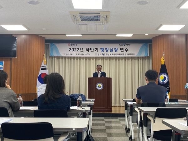 [한국기자연대] 봉화교육지원청은 30일, 청사 대회의실에서 소속기관(봉화도서관)·유·초·중학교 행정실장 22명을 대상으로 2022년 하반기 행정실장 연수를 실시했다.