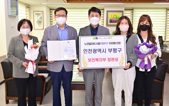 [한국기자연대] 부평구는 지난 29일 보건복지부와 한국노인인력개발원에서 실시한 ‘2021년 노인일자리 사업 종합평가’에서 최우수 지방자치단체로 선정돼 보건복지부 장관상을 수상했다.