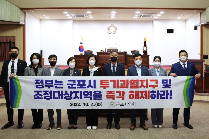 이어 이혜승 의원(투기지역 해제 결의안 대표 발의)은 “주택 가격 하락 및 거래 위축, 대출 규제 등 군포시민의 피해를 더 이상 좌시할 수 없다”며 “투기 우려가 사라진 군포지역을 즉각 투기과열지구 및 조정대상지역에서 해제해야 한다”고 강조했다.