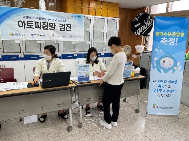 수원시환경성질환아토피센터 소속 간호사가 학생들의 피부를 검사해 경피수분증발량(TEWL)을 측정하고, 소아과 전문의인 아토피센터 부센터장이 아토피피부염 증증도(SCORAD)를 평가했다. 측정 결과는 건강 카드에 기재해 안내문과 함께 학생들에게 나눠줬다.