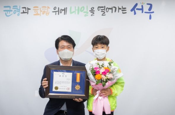 사연의 주인공은 서곶초등학교 4학년에 재학 중인 조상우 군으로 알려졌다. 이에 따라 서구는 7일 해당 어린이와 부모님을 서구청으로 초청해 구청장실에서 표창을 수여하고 격려와 칭찬을 건넸다.