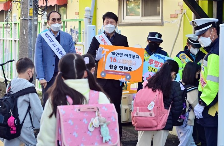 이번 캠페인은 운전자를 대상으로 안전속도 5030 준수, 전동킥보드 안전 주행 등을 홍보하고, 등굣길 학생들을 대상으로는 보행 중 스마트폰 사용 금지, 횡단보도에서 안전보행 등 어린이 교통안전 수칙의 교육과 홍보를 실시했다.
