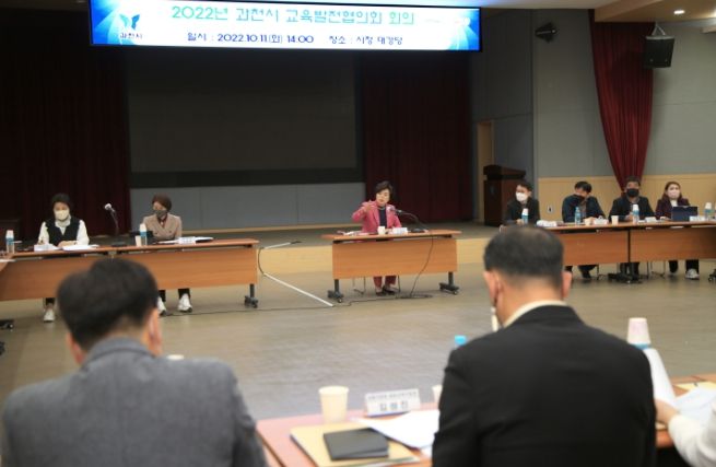 [한국기자연대] 과천시는 11일 과천시청 대강당에서 ‘2022년 과천시 교육발전협의회’를 구성하고 관내 교육정책 및 교육지원에 관한 심도있는 논의를 펼쳐나가기로 했다.