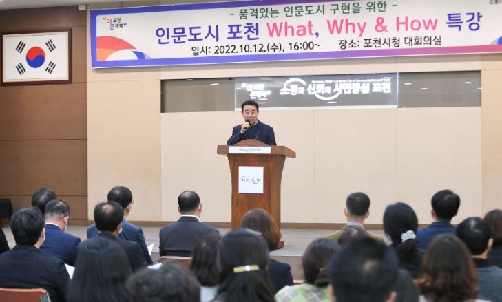 [한국기자연대] 포천시는 지난 12일 포천시청 대회의실에서 인문도시 구현방법 모색을 위한 특강 ‘인문도시 포천 What Why & How’를 진행했다.