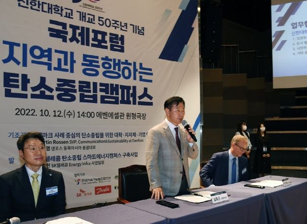 이날 협약식은 신한대학교 개교 50주년을 기념하여 개최한 신한대학교 탄소중립캠퍼스 선언식과 함께 진행됐다.