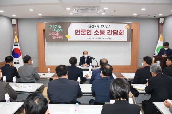 박형덕 동두천시장은 지난 13일 시청 소회의실에서 출입 언론인 30여명이 참석한 가운데 민선8기 출범 100일 언론인 소통 간담회를 가졌다.