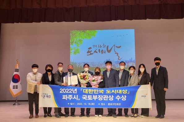 [한국기자연대] 파주시는 18일 ‘2022년 대한민국 도시대상’ 시상식에서 지원체계부문 중소도시 1위 지자체로 선정돼 국토부장관상을 수상했다.