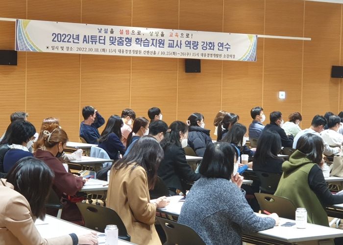 [한국기자연대] 경기도용인교육지원청은 대웅경영개발원 컨벤션홀에서 10월 17,18일 이틀간 2022년 AI튜터 맞춤형 학습지원 초등 교원 역량 연수를 진행했다. 이 연수에는 용인 지역 교장 103명, 교감 108명, 교사 118명이 참여했다.