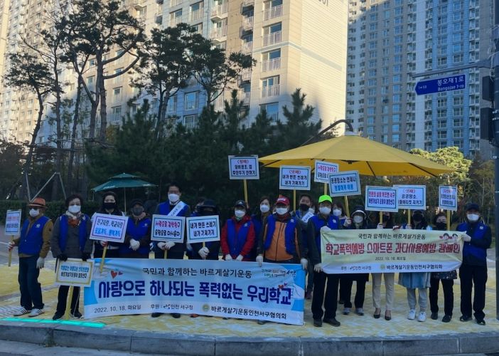 [한국기자연대] 인천광역시 서구는 바르게살기운동 서구협의회가 18일 가현초등학교 앞에서 ‘바르게 청소년 인성교육 캠페인’을 열었다고 밝혔다.