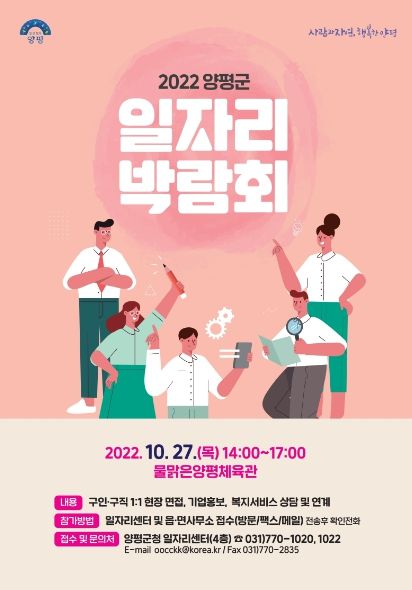 [한국기자연대] 양평군은 오는 27일, 오후 2시부터 5시까지 물맑은양평체육관(양평읍 마유산로 11)에서 2022년 양평군 일자리 박람회를 개최한다.