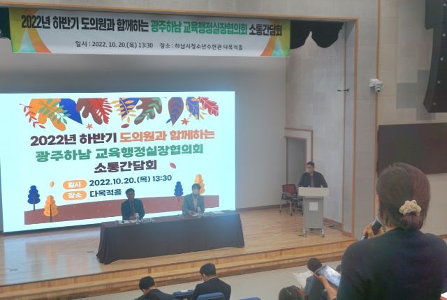 [한국기자연대] 경기도광주하남교육지원청은 10월 20일 하남시청소년수련관에서‘2022 하반기 도의원과 함께하는 광주하남 교육행정실장협의회 소통간담회’를 개최했다.