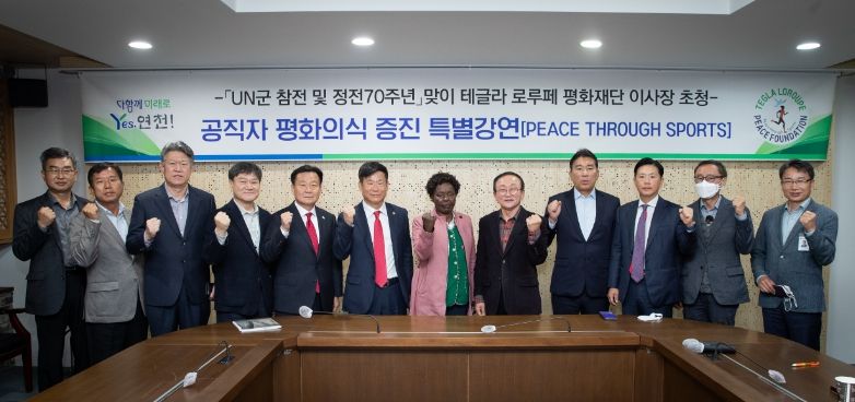 이날 테글라 로루페 이사장은 서울에서 열린 제26차 국가올림픽위원회 연합회총회(ANOC) 방한 일정 중 연천군을 방문, 공직자 대상 평화의식 증진 특별 강연자로 나서 스포츠를 통한 평화와 인권을 설명하며 평화의 의미를 강조했다.