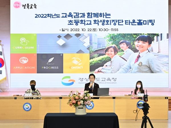 [한국기자연대] 경북교육청은 지난 22일 웅비관에서 도내 초·중학교 학생회장단을 대상으로‘2022학년도 교육감과 함께하는 초·중학교 학생회장단 타운홀미팅’을 개최했다고 밝혔다.