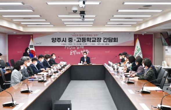 [한국기자연대] 양주시는 지난 24일 시청 상황실에서 관내 19개교의 중·고등학교장과 간담회를 개최해 소통하는 시간을 마련했다.